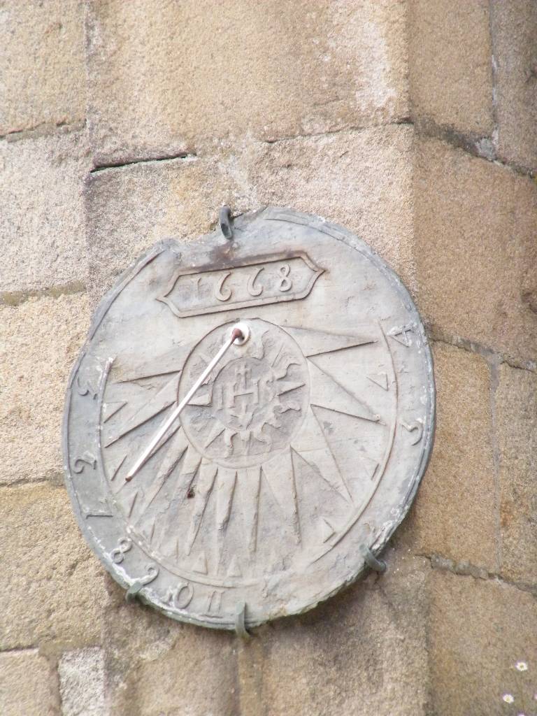 Apposé sur la façade Sud de l'église, face au calvaire, ce cadran solaire porte sa date de création.