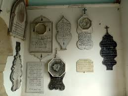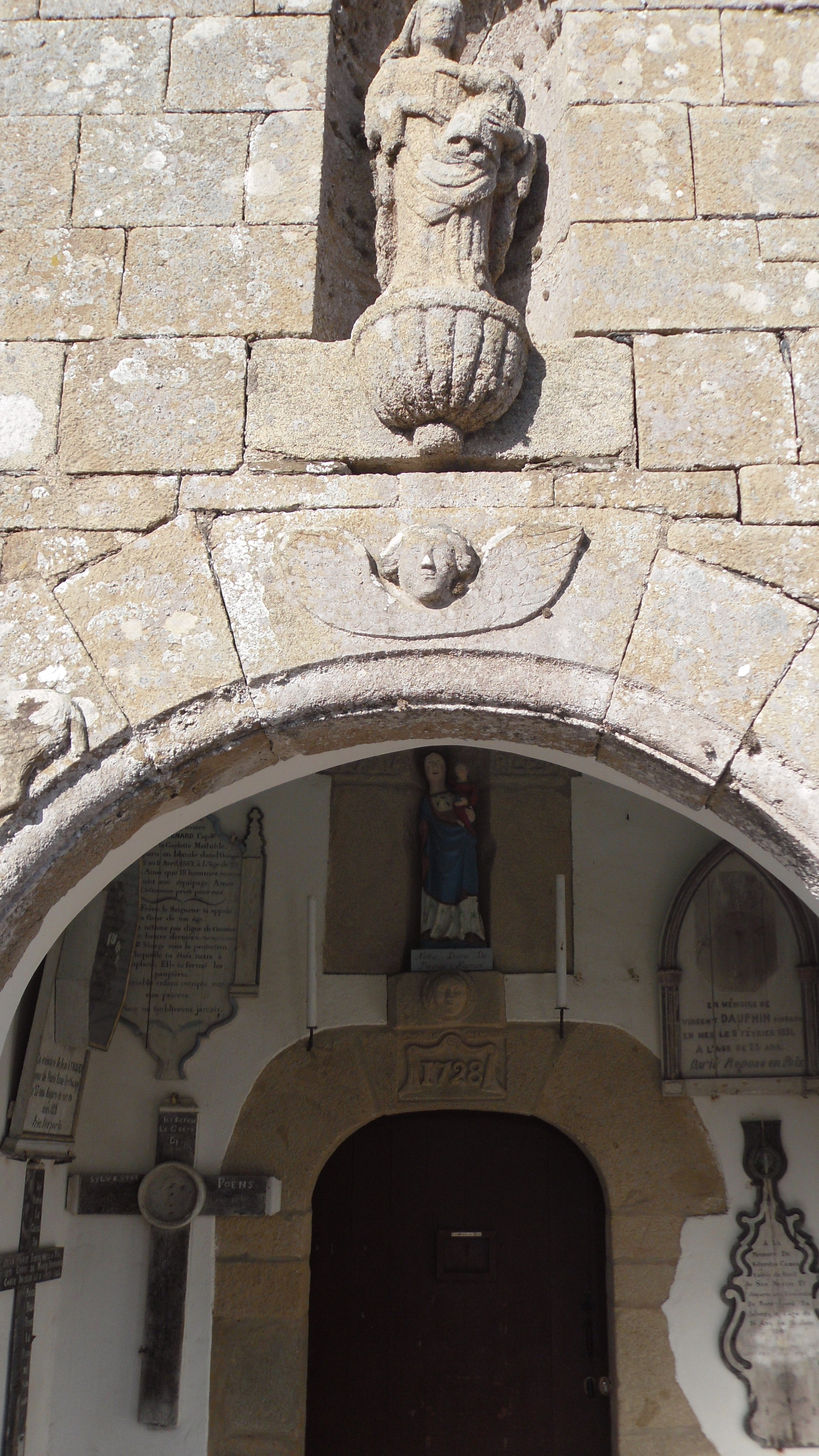 Les murs du porche sud sont couverts de "mémoires", plaques commémoratives des nombreux disparus en mer des pêches d'Islande.