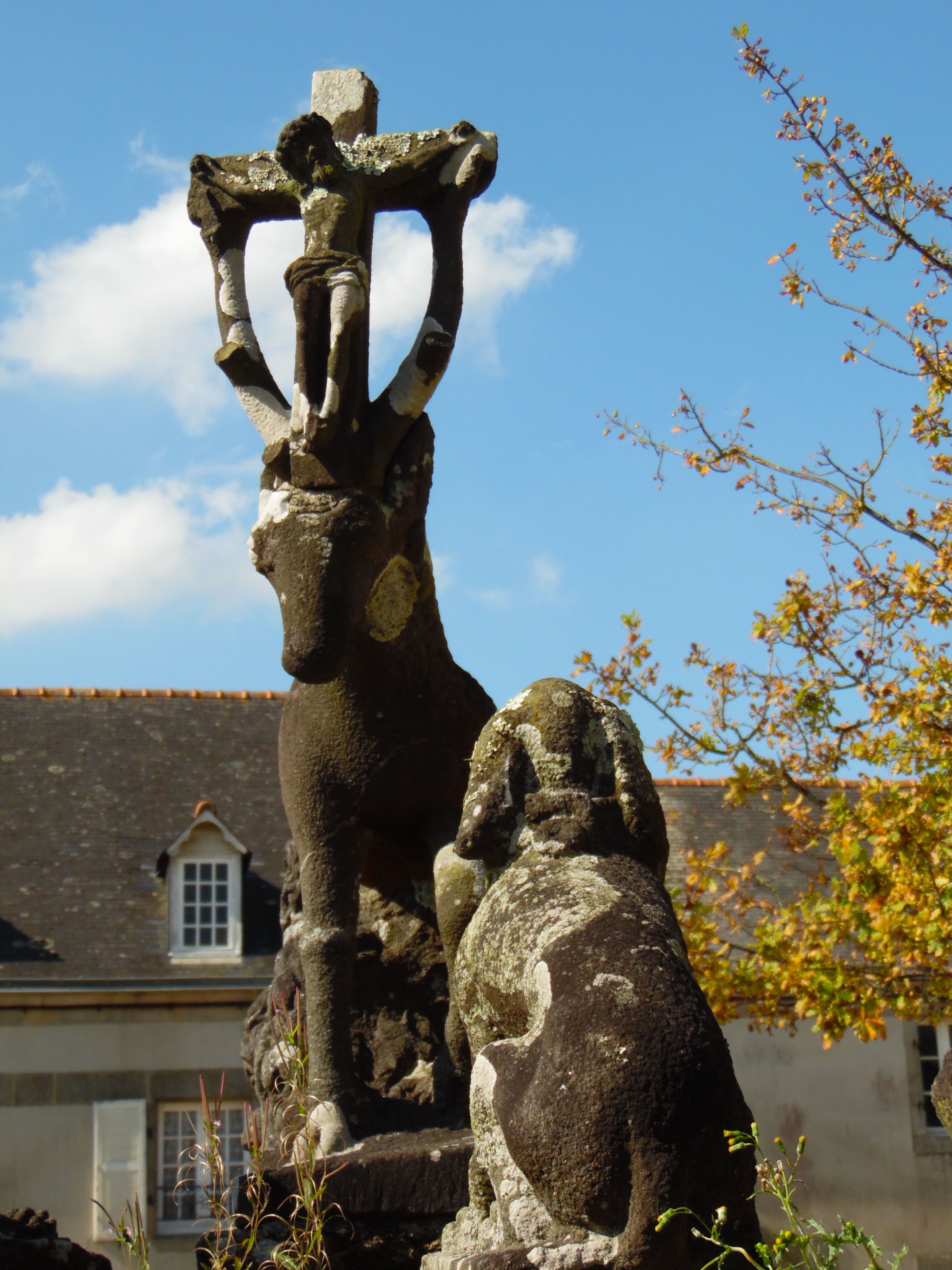 Au XVIème siècle, un artiste inconnu illustre dans la pierre la légende de Saint-Hubert. Son talent révèle un sculpteur portraitiste et animalier. Capable de mettre en scène, avec la même élégance, hommes et bêtes. La finesse des traits, la richesse des détails et l'équilibre de la composition font de l'ensemble un chef d'œuvre unique en Bretagne.