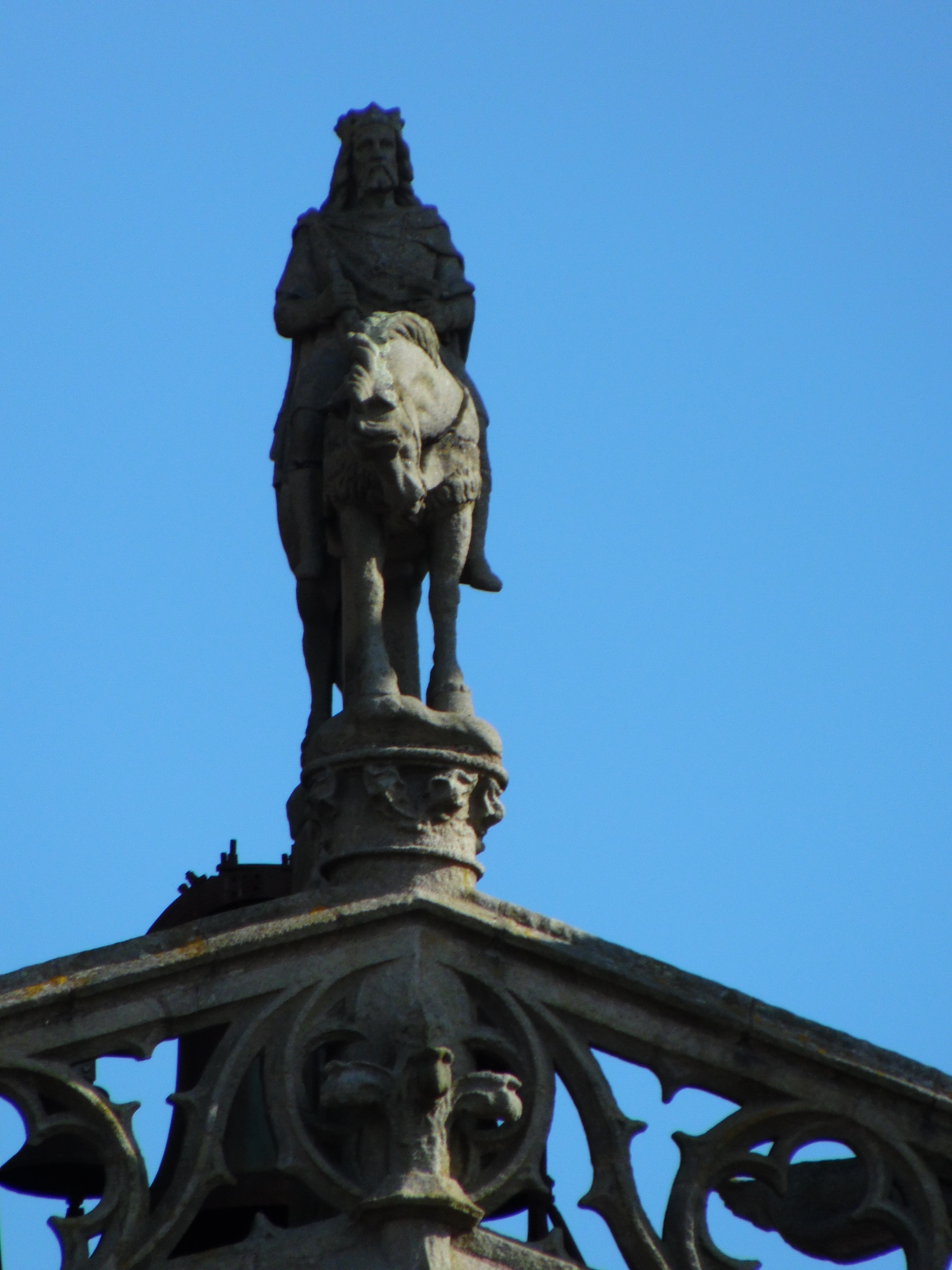 Une ancienne coutume voulait que chaque année le 26 juillet, un habitant de Quimper grimpe sur la statue. Assis en croupe derrière le roi, il devait lui attacher un linge autour du cou et lui présenter un verre à pied rempli de vin. Le volontaire buvait ensuite le verre de vin et essuyait les lèvres de la statue avec le linge. Puis il jetait le verre vide au public rassemblé sur la place. Si quelqu'un était capable de se saisir du verre au vol sans le casser, il se voyait gratifier de cent pièces d'or. On raconte que des conseillers, pour ménager les finances de la ville, auraient secrètement donné l'ordre de fragiliser le pied du verre au moyen de traits de scie invisible.